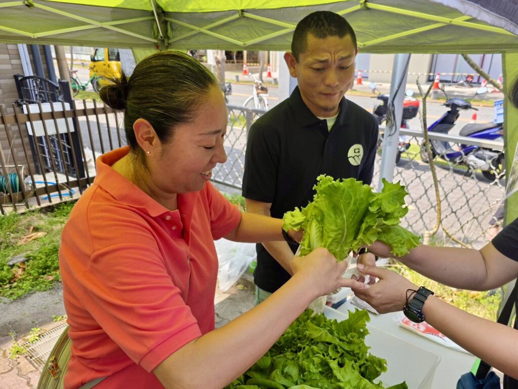先日のファーマーズマーケットでは即配布終了となった、鮮度抜群の水耕栽培リーフレタス&ホウレンソウ。