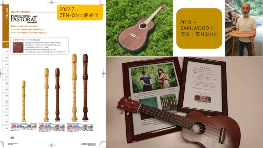 ※資源量が少ないので、付加価値の高い楽器や家具製造により小笠原木材のブランディングを目指します。